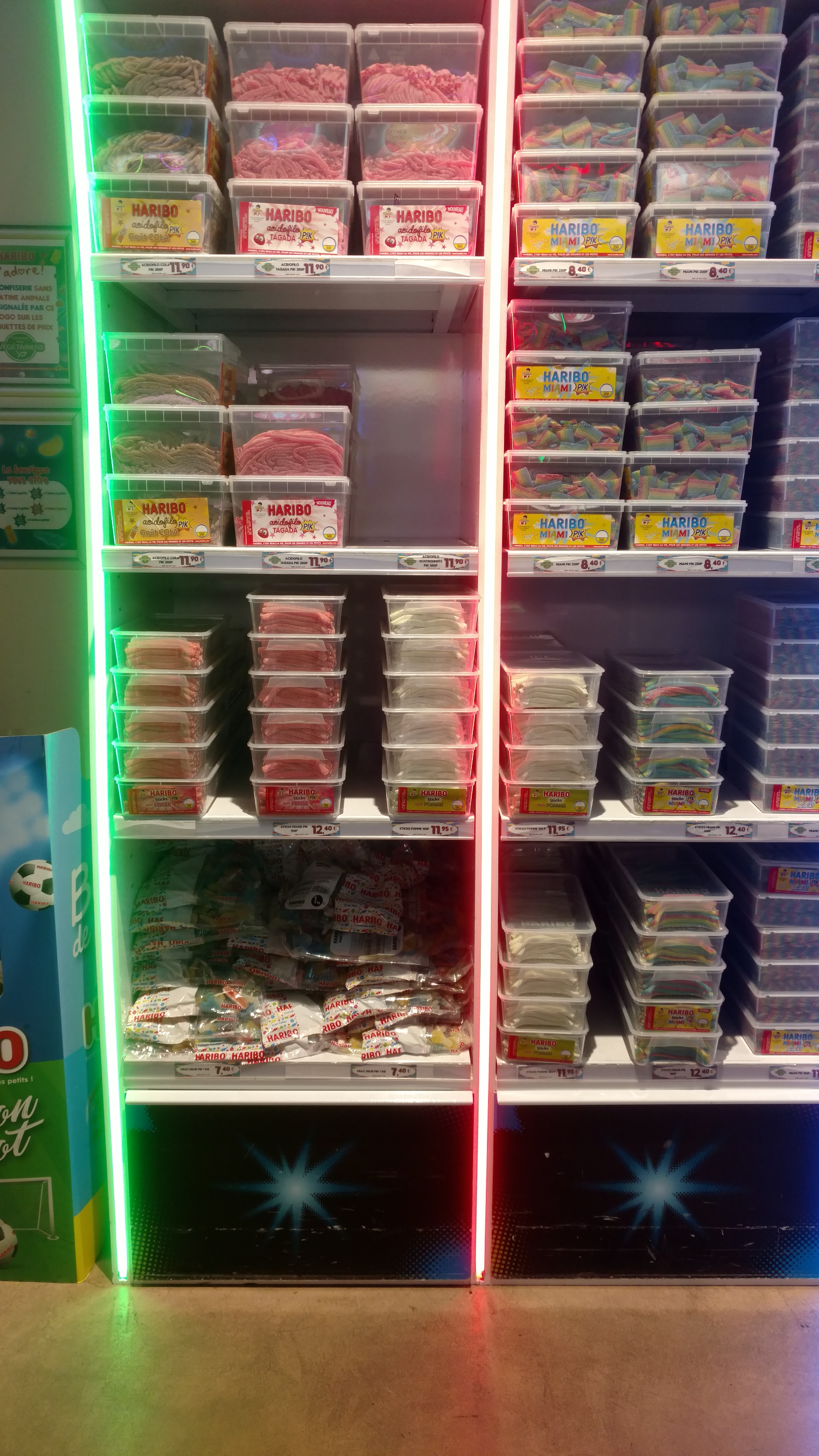 Posté le 04/11/2019 à 11:52"Des bonbons bien rangés et variés disponible en (trop?)gros volumes, quelques mix sympa,des produits dérivés et des idées créatives.grosde chaleur par contre."