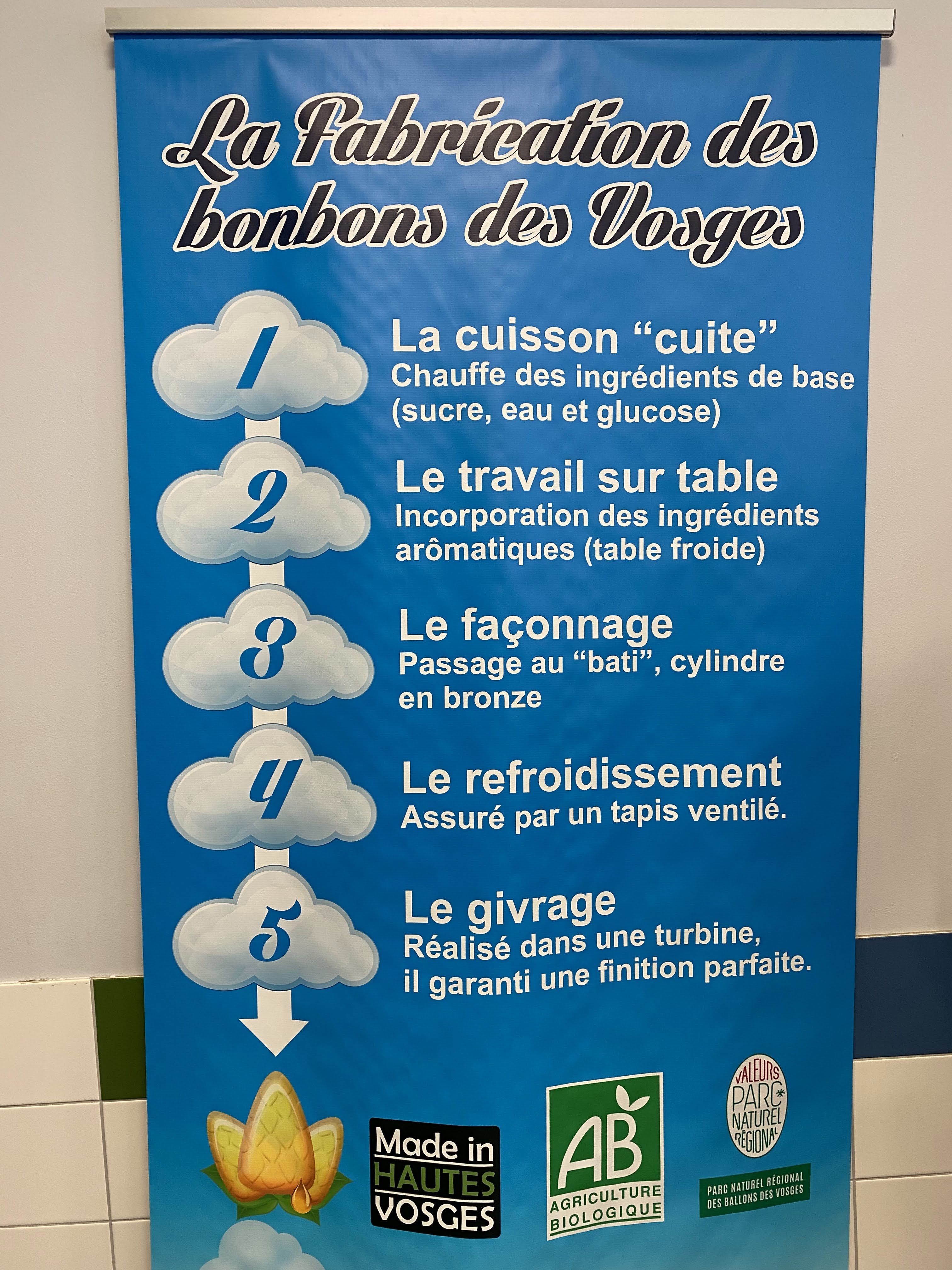 Nous venons de visiter la confiserie et nous sommes très content d’avoir appris comment sont fait les bonbons des Vosges, le monsieur aime sont travail et sa se voit, merci à vous 🥰